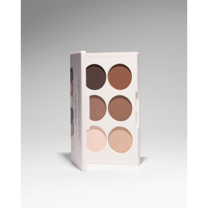 Elle comprend 4 fards mats, idéaux pour créer une base subtile, sculpter la paupière et ajouter de la profondeur, ainsi que 2 fards Shine, qui apportent des accents lumineux et illuminent le maquillage.