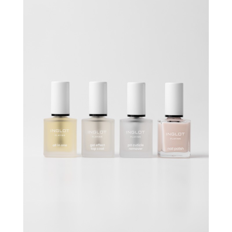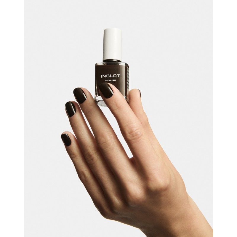 Si tu souhaites prolonger la tenue du vernis et augmenter la protection contre les dommages mécaniques, applique une base et un top coat de la gamme INGLOT PLAYINN.